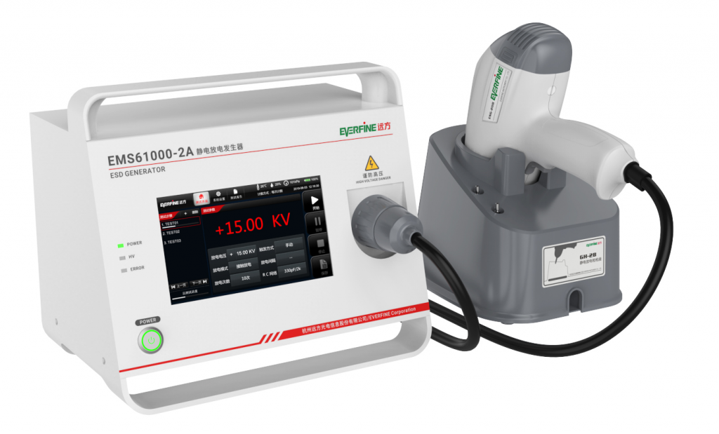 EMS61000-2A Electrostatic Discharge Generator is a reliable instrument specially designed according to the requirements of ESD (Electrostatic Discharge) measurement. The IEC mode, HBM mode(optional) and MM mode(optional) tests can be carried out conveniently by replacing the discharge module . Its performance conforms to the latest IEC 61000-4-2,EN61000-4-2 and Chinese standard GB/T17626.2. It is suitable for the ESD test of different types of semiconductor devices, electronic circuits and electronic devices.